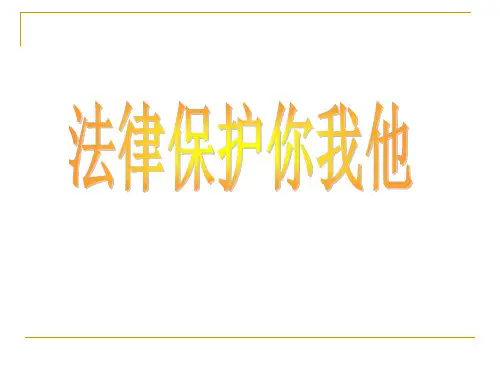 法律保护你我他(科教版思品五下)法律保护你我他活动目标、让学生懂得法律与人们的生活息息相关的道理,初步形成知法、守法的意识;2、让学生了解与少年儿童相关的法律,学会用法律手段来保护自己的正当权益。