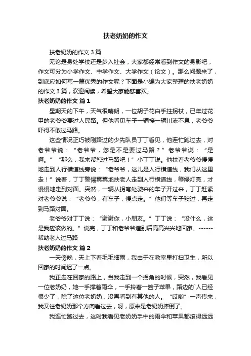 那么问题来了,到底应如何写一篇优秀的作文呢?下面是小编为大家整理的扶老奶奶的作文3篇,欢迎阅读,希望大家能够喜欢。