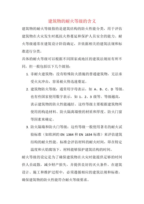 三、民用建筑耐火等级的影响1. 保障人员生命安全:民用建筑的耐火等级直接关系到人员的生命安全。