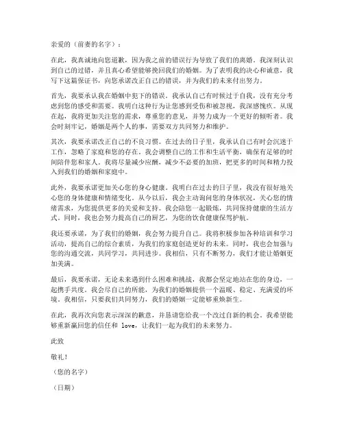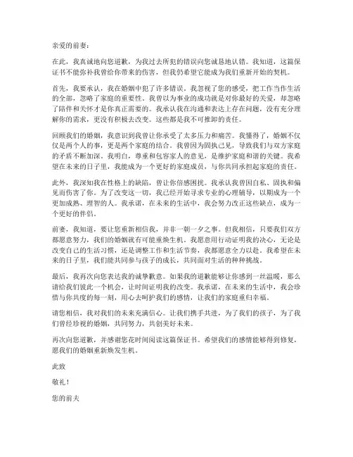 范文一:真诚的道歉信亲爱的(前妻的名字):我知道我犯了一个大错,我没有珍惜我们的婚姻,我没有给你足够的关爱和支持。