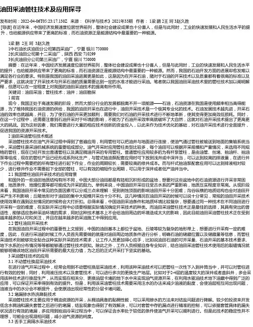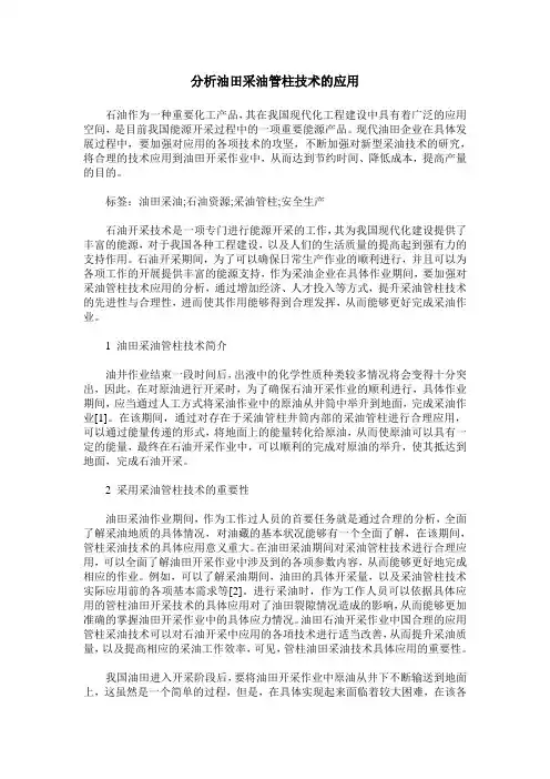分析油田采油管柱技术的应用石油作为一种重要化工产品,其在我国现代化工程建设中具有着广泛的应用空间,是目前我国能源开采过程中的一项重要能源产品。