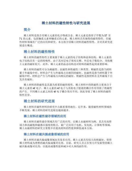 稀土材料的研究进展稀土材料在磁性材料的研究中占据重要的地位。
