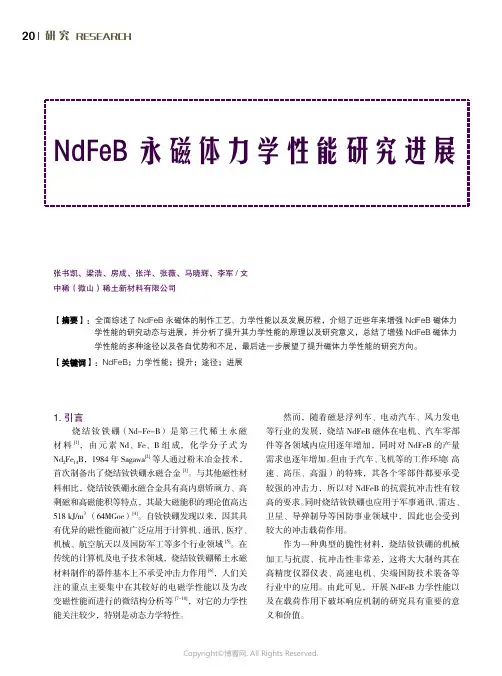 二、稀土永磁材料的研究进展目前,稀土永磁材料的研究进展主要表现在以下几个方面。