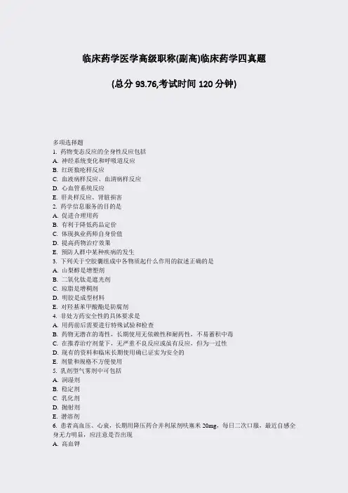 1. 论述临床药学在提高患者用药安全性和有效性方面的作用。