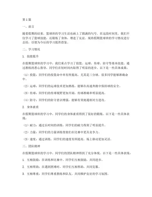 第1篇一、前言随着假期的结束,篮球班的学习生活也画上了圆满的句号。