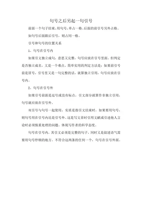 双引号与句号一起使用,实质是指引文结束时,如果要用句号,则句号用在引号内还是引号外。