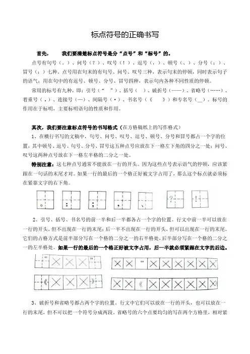 标点符号的正确书写首先,我们要清楚标点符号是分“点号”和“标号”的。