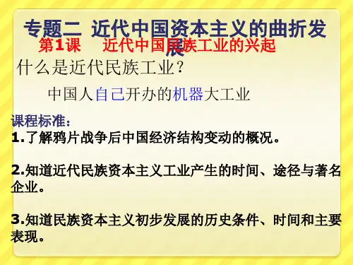 2.1近代中国民族工业的兴起简述鸦片战争后中国经济结构的变动和近代民族工业兴起的史实,认识近代中国资本主义产生的历史背景。