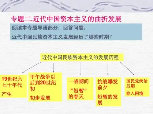 二、讲授新课:【教师引导】:同学们快速阅读专题二的导语部分,找出近代中国资本主义曲折发展的几个阶段。