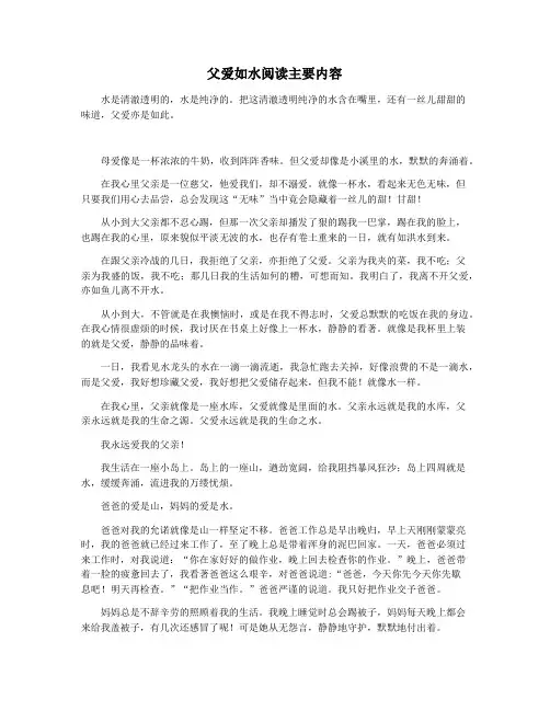 父爱如水阅读主要内容水是清澈透明的,水是纯净的。