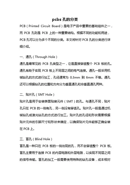 pcbs孔的分类PCB(Printed Circuit Board)是电子产品中重要的基础组件之一,而PCB孔则是PCB上的一种重要结构。