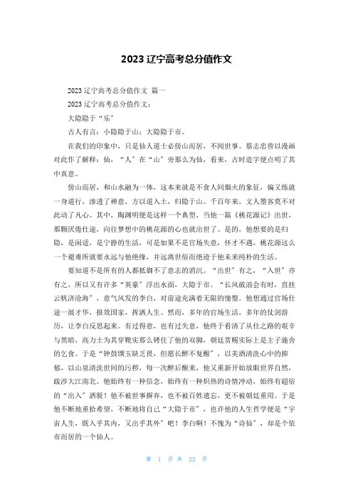 2023辽宁高考总分值作文2023辽宁高考总分值作文篇一2023辽宁高考总分值作文:大隐隐于“乐〞古人有言:小隐隐于山;大隐隐于市。