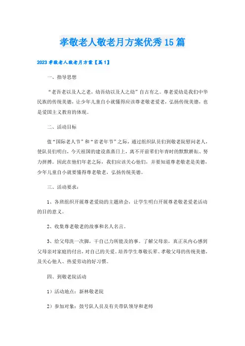 让我们用行动感染身边的每一个人,使全社会形成共同关心、关爱老人的良好氛围,为创建和谐新华做出自己应有的贡献!________月__日敬老爱老倡议书2敬老爱老助老是中华民族的传统美德,是先辈传承下来的宝贵精神财富。