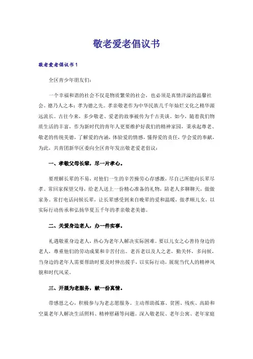 敬老爱老倡议书敬老爱老倡议书1全区青少年朋友们:一个幸福和谐的社会不仅是物质繁荣的社会,也必须是真情洋溢的温馨社会。