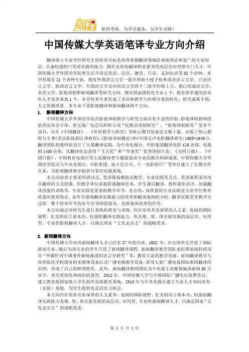 1. 影视翻译方向中国传媒大学外国语学院在影视译制教学与研究方面具有丰富的经验。