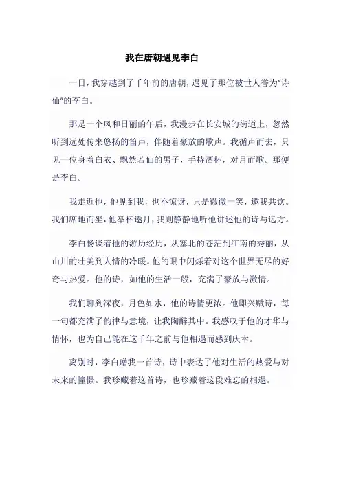 我与李白邂逅作文《我与李白邂逅》篇一嘿,你能想象吗?我居然和李白来了一场超酷的邂逅!那感觉,就像是做梦一样,但又特别真实。
