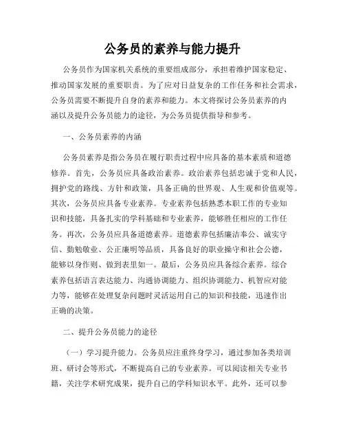 公务员的素养与能力提升公务员作为国家机关系统的重要组成部分,承担着维护国家稳定、推动国家发展的重要职责。