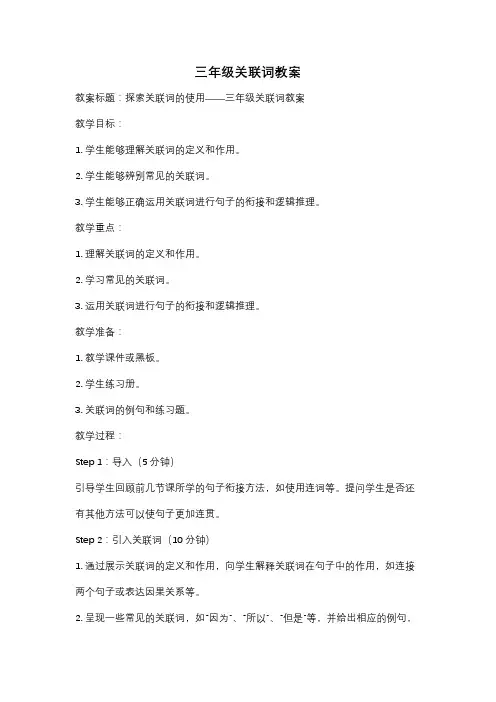 关联词教案引言:关联词是语言中的重要组成部分,它们在句子和段落中起着连接和衔接不同内容的作用。