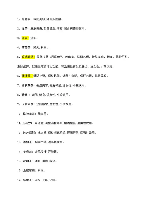 ★1、荷叶茶荷叶茶具有排水利尿,健康消脂的作用。