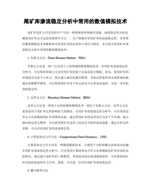 尾矿库渗流稳定分析中常用的数值模拟技术尾矿库是矿山开采过程中产生的一种固体废弃物储存设施,渗流稳定性分析是确保尾矿库安全运营的重要环节之一。