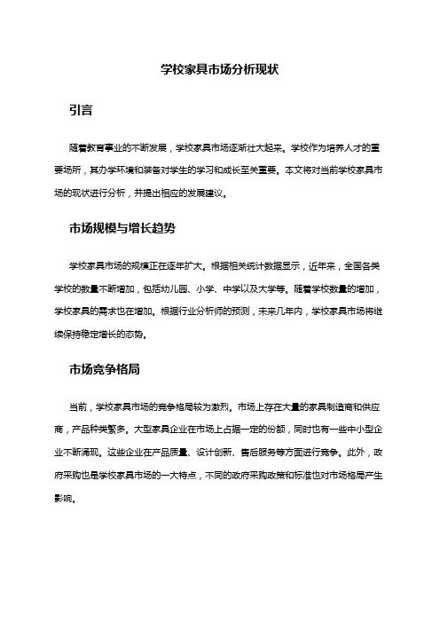 学校家具市场分析现状引言随着教育事业的不断发展,学校家具市场逐渐壮大起来。