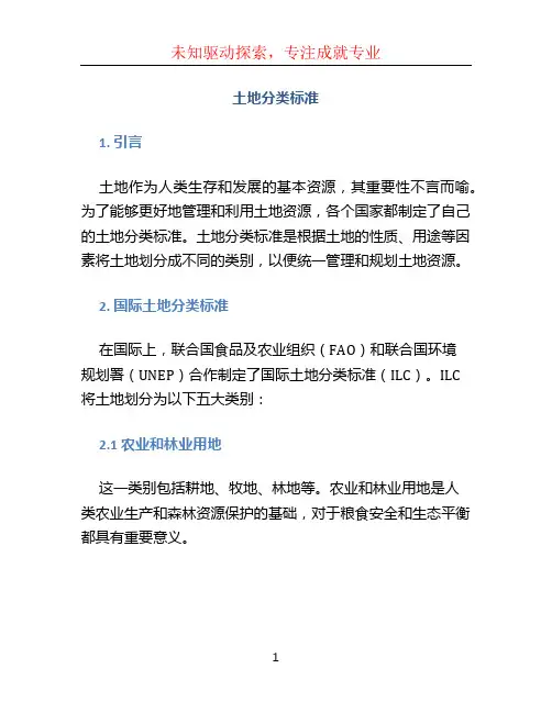土地分类标准1. 引言土地作为人类生存和发展的基本资源,其重要性不言而喻。