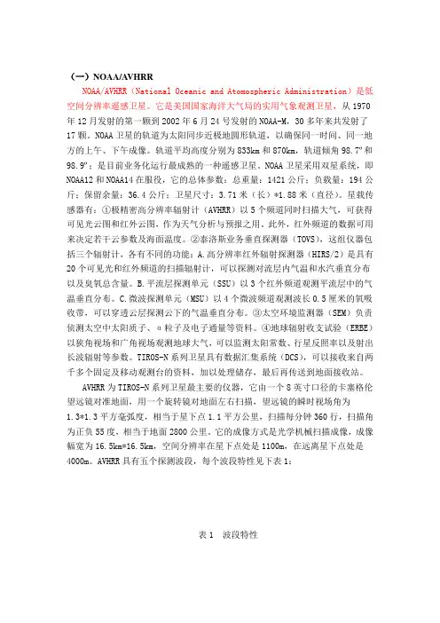 (一)NOAA/A VHRRNOAA/AVHRR(National Oceanic and Atomospheric Administration)是低空间分辨率遥感卫星。