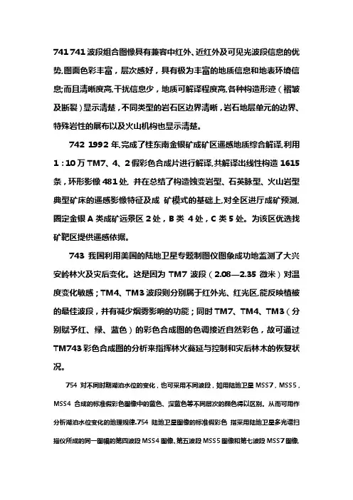 遥感影像的波段组合及用途高光谱遥感数据最佳波段的选择根据自己对具体影像解译的要求进行波段的选择,以提高解译的速度和精度。
