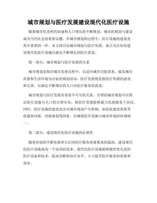 5结语:灵活可变,可持续的发展方向综上所述,从“综合医院”———“医疗中心”———“医院城”———“健康城”这些事物的先后出现,我们可以发现医疗建筑是不断变化升级和发展的。