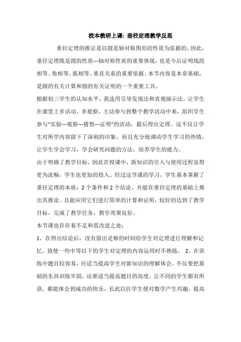 三、活动反思1. 教学内容方面本次活动使教师们对垂径定理有了更加深入的理解。