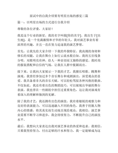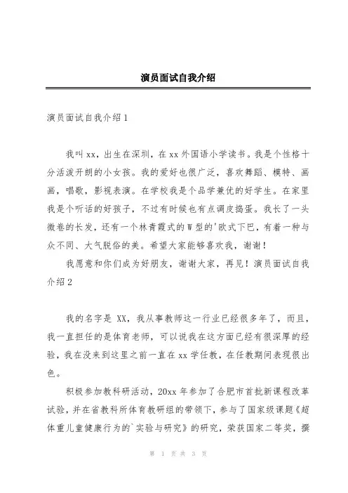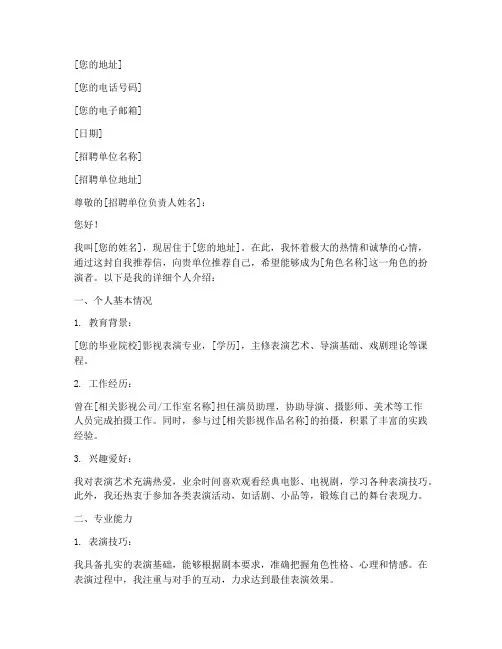 面试演员自我介绍尊敬的评委和面试官们:大家好!非常荣幸能够有机会参加这次演员面试。