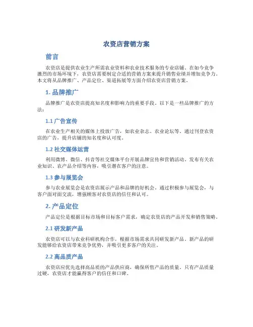 农资店营销方案前言农资店是提供农业生产所需农业资料和农业技术服务的专业店铺。
