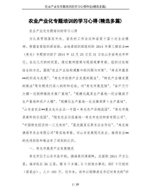 农业产业化专题培训的学习心得体会农业产业化,作为现代农业的一种重要模式,已经在我国得到了广泛的推广和应用。