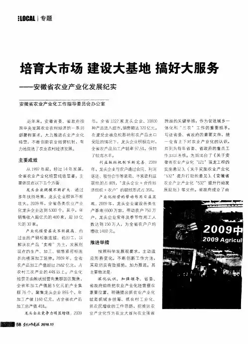 一、企业十年来推进农业产业化经营的发展历程1997年___集团从农牧业最基层的养殖做起,经过四年来的研究与实践,探索出饲料的核心技术。