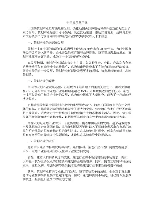 同时,随着互联网和新媒体的发展以及人们对生活质量要求的提高,策划行业也在不断变革和创新。