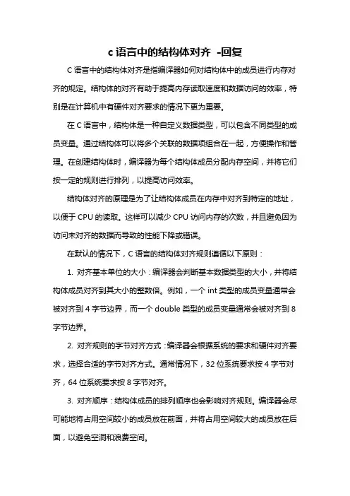 c语言中的结构体对齐-回复C语言中的结构体对齐是指编译器如何对结构体中的成员进行内存对齐的规定。
