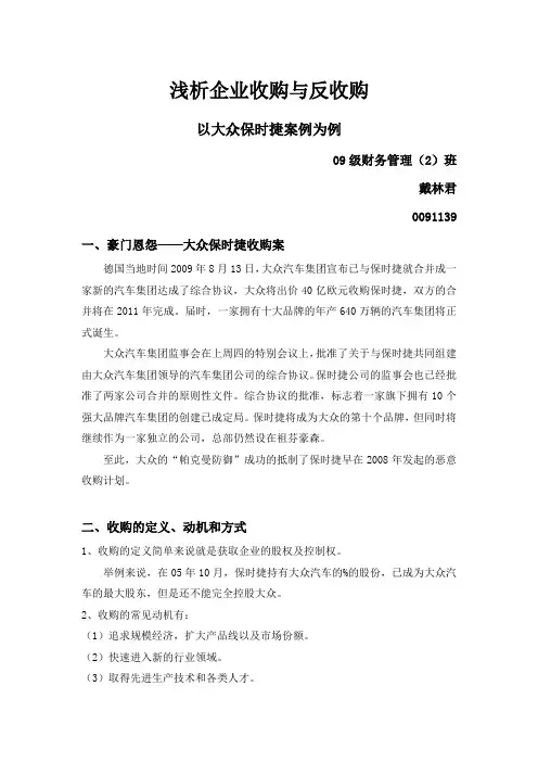 财经故事:保时捷与大众的收购与反收购一、保时捷阴谋:巧妙利用市场交易规则狠狠玩了空头一把和讯网作者:卢曦采访手记2008年11月20号早上8点,我边吃早餐边看CNN转播美国汽车业三巨头要求政府纾困的听证会。