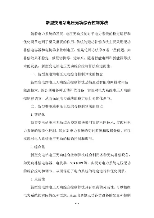 二、新型变电站电压无功综合控制算法的特点1.智能化新型变电站电压无功综合控制算法采用智能电网技术,实现对电力系统的智能化控制。