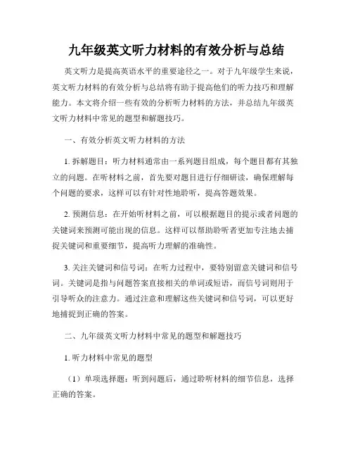 九年级英文听力材料的有效分析与总结英文听力是提高英语水平的重要途径之一。