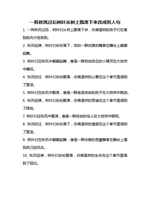 拟人句拟人句就是把某件东西比喻成有人的动作,而不是像童话形式。