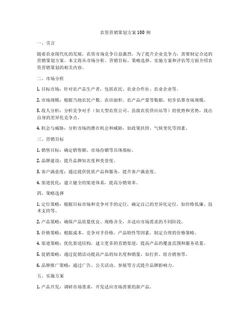 农资营销策划方案100例一、引言随着农业现代化的发展,农资市场竞争日益激烈。