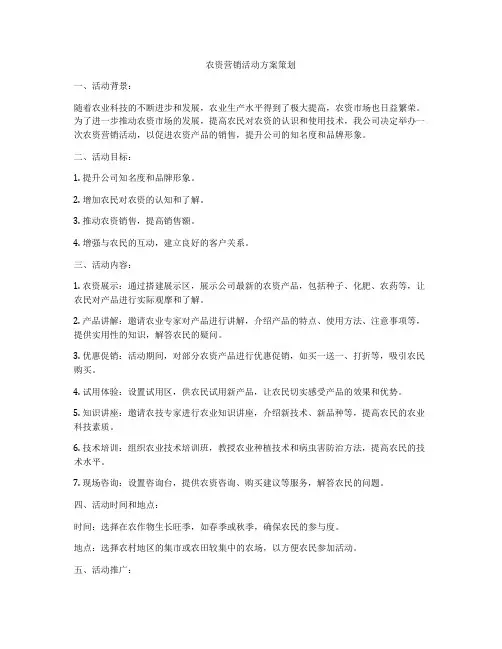 农资营销活动方案策划一、活动背景:随着农业科技的不断进步和发展,农业生产水平得到了极大提高,农资市场也日益繁荣。
