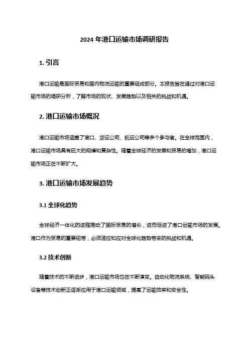 2024年港口综合物流市场调研报告1. 引言本报告对港口综合物流市场进行了全面的调研和分析。