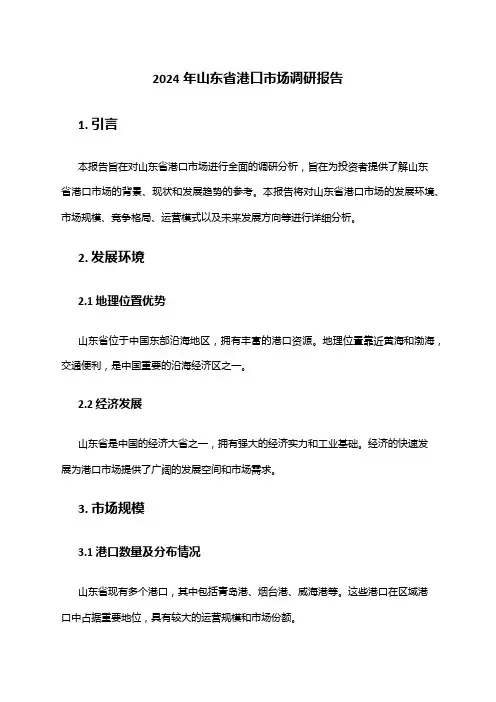 2024年港口综合物流市场调查报告1. 引言本报告为对港口综合物流市场进行的调查。