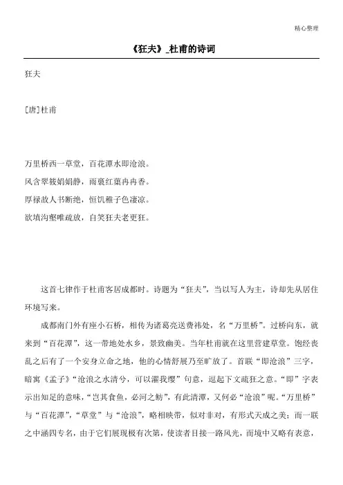 《狂夫》是唐代诗人杜甫创作的一首七言律诗。