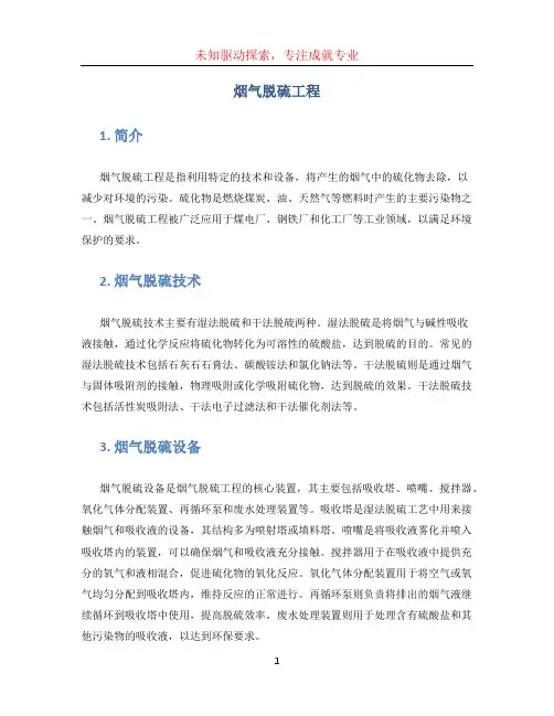 烟气脱硫工程1. 简介烟气脱硫工程是指利用特定的技术和设备,将产生的烟气中的硫化物去除,以减少对环境的污染。