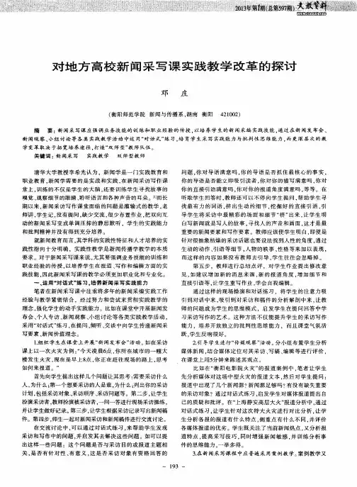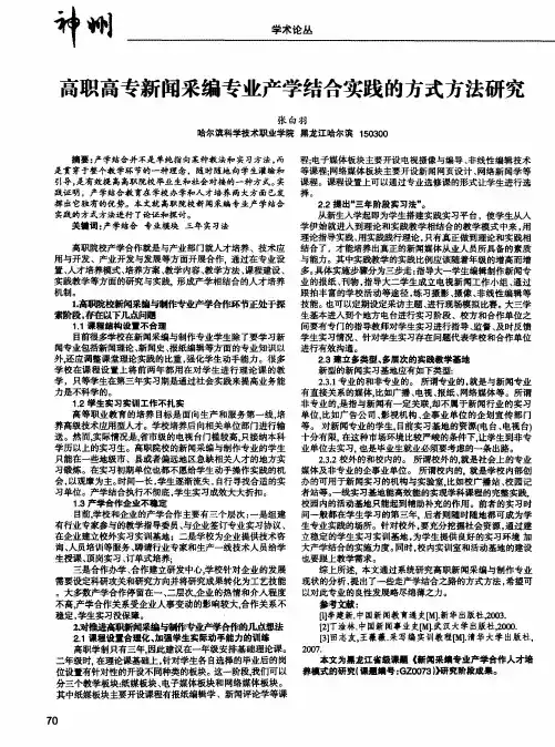 2. 培养学生的创新能力在实践教学中,学生可以接触到丰富的新闻资源,学会分析问题、解决问题,从而培养创新思维。