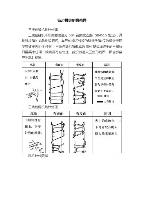 锁边机缝纫机修理三线包缝机跳针处理三线包缝机所形成的线迹为504链式线迹(按GB4515规定),其跳针故障的排除比较麻烦。