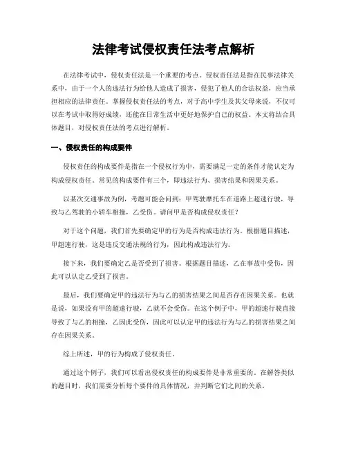 法律考试侵权责任法考点解析在法律考试中,侵权责任法是一个重要的考点。