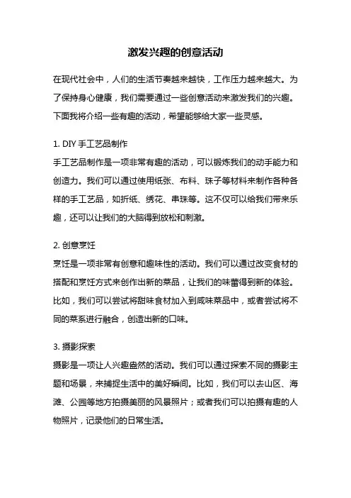 有趣又好玩的活动活动是人们生活中不可或缺的一部分,不仅可以丰富我们的生活,还可以增加社交互动,提升个人技能。